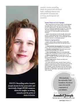 For readers and writers alike, Annabel Joseph’s work is a testament to the power of romance that dares to delve into the shadows of desire. Her stories don’t just ignite the senses— they challenge, comfort, and linger in the soul. And for those dreaming of crafting their own provocative tales, her wisdom lights the way: write boldly, write honestly, and above all, write with heart.