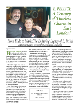 E. Pellici is a must-visit café in East London. With its rich history, warm family atmosphere, and delicious offerings, it’s a place that continues to captivate and leave a lasting impres- sion on all who step through its doors.
