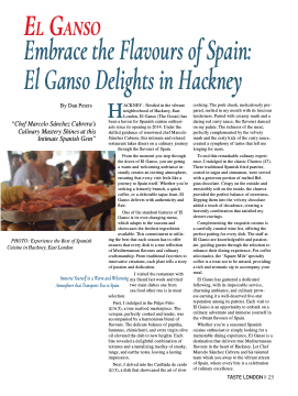 ACKNEY - Nestled in the vibrant cooking. The pork cheek, meticulously pre- neighborhood of Hackney, East pared, melted in my mouth with its luscious London, El Ganso (The Goose) has tenderness. Paired with creamy mash and a