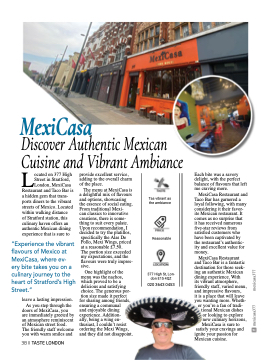 “Experience the vibrant flavours of Mexico at MexiCasa, where ev- ery bite takes you on a culinary journey to the heart of Stratford’s High Street.”